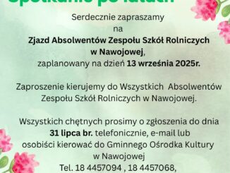 „Spotkajmy się po latach” Serdecznie zapraszamy na Zjazd Absolwentów Zespołu Szkół Rolniczych w Nawojowej, który zaplanowany jest na dzień 13 września 2025 r. . Zaproszenie kierujemy do każdego absolwenta Zespołu Szkół Rolniczych w Nawojowej. W programie : Msza św. godz. 11:00 w kościele parafialnym w Nawojowej. Złożenie kwiatów na mogiłach […]