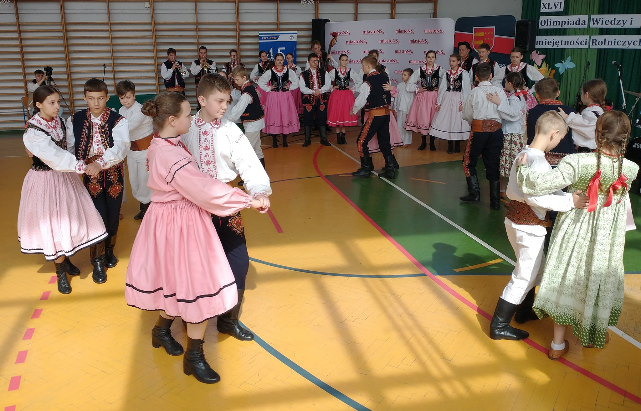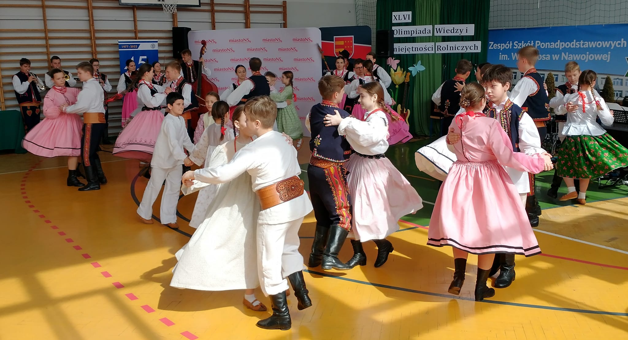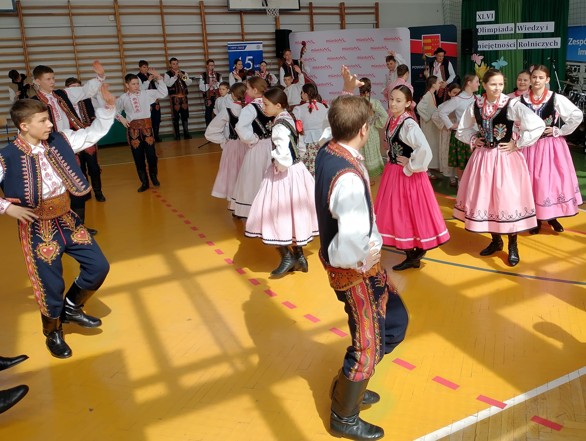 Na zakończenie odbywającej się w Zespole Szkół Ponadpodstawowych im. W. Witosa w Nawojowej 46 edycji Olimpiady Wiedzy i Umiejętności Rolniczych koncert artystyczny przedstawił dziecięco – młodzieżowy zespół Folklorystyczny Piecuchy.