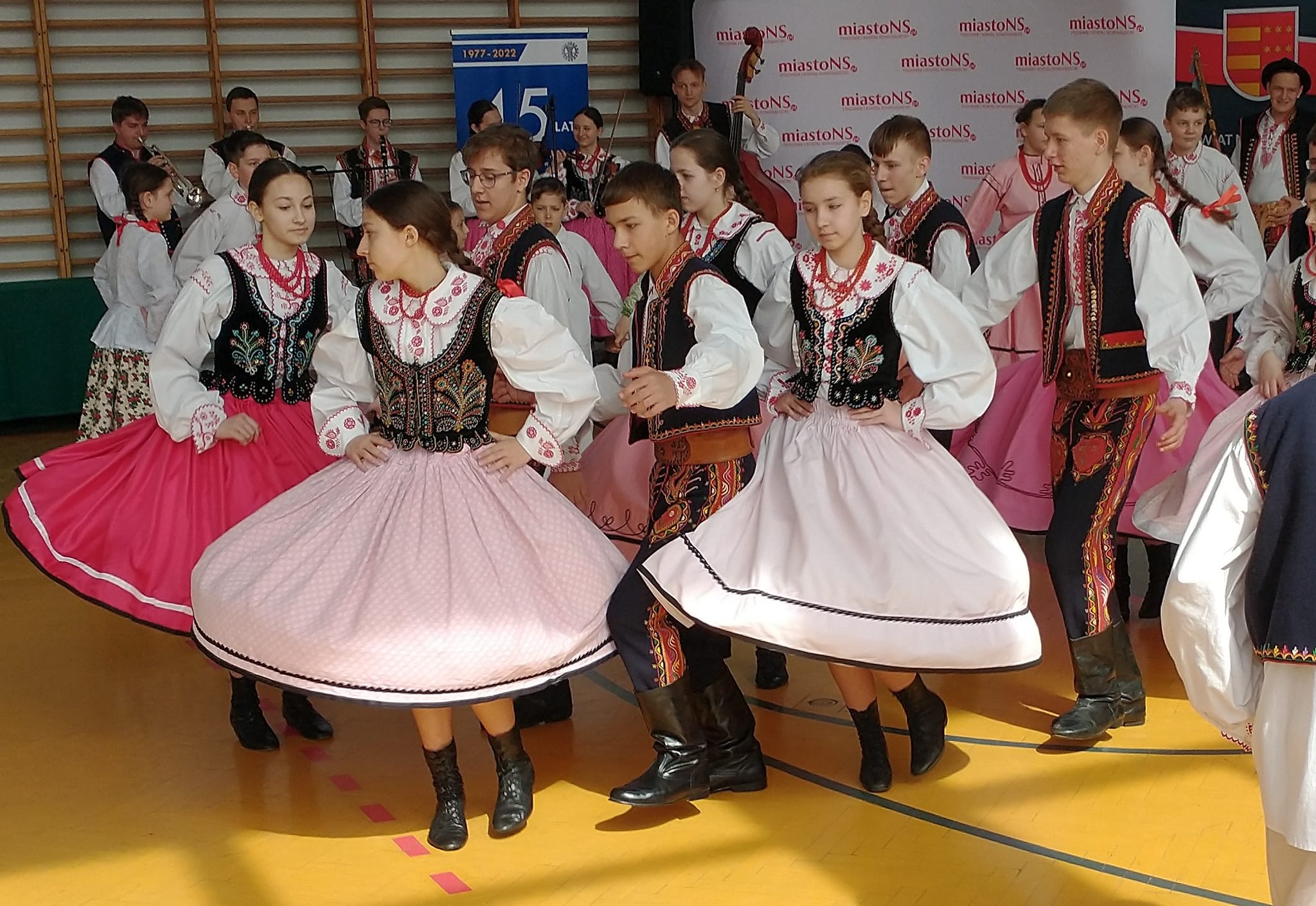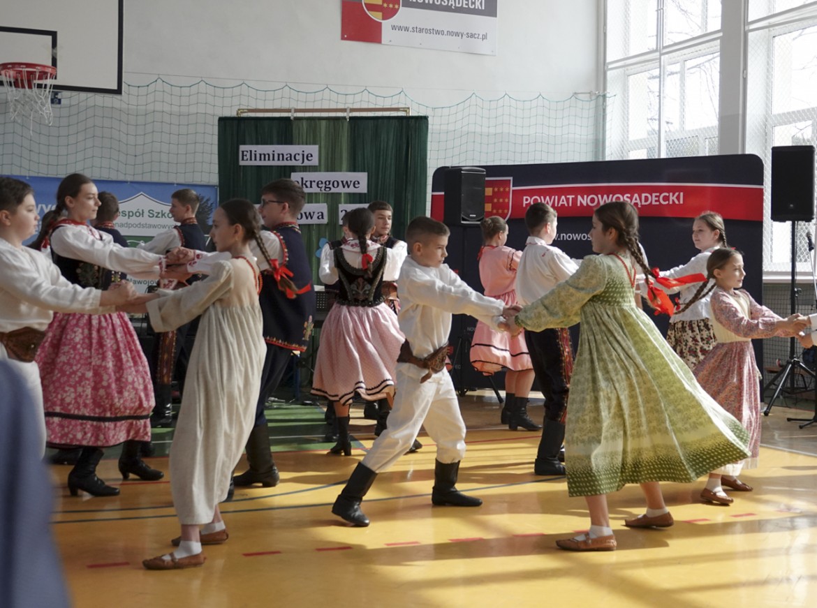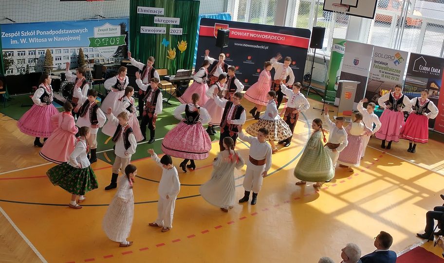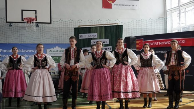 Na zakończenie odbywającej się w Zespole Szkół Ponadpodstawowych im. W. Witosa w Nawojowej 46 edycji Olimpiady Wiedzy i Umiejętności Rolniczych koncert artystyczny przedstawił dziecięco – młodzieżowy zespół Folklorystyczny Piecuchy.