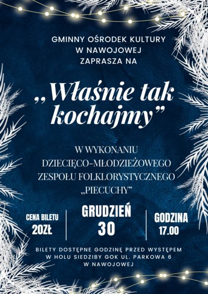Gminny Ośrodek Kultury zaprasza 30 grudnia br.na godzinę 17:00 na musical bożonarodzeniowy w wykonaniu Dziecięco – Młodzieżowego Zespołu Folklorystycznego Piecuchy. Szczegóły poniżej…