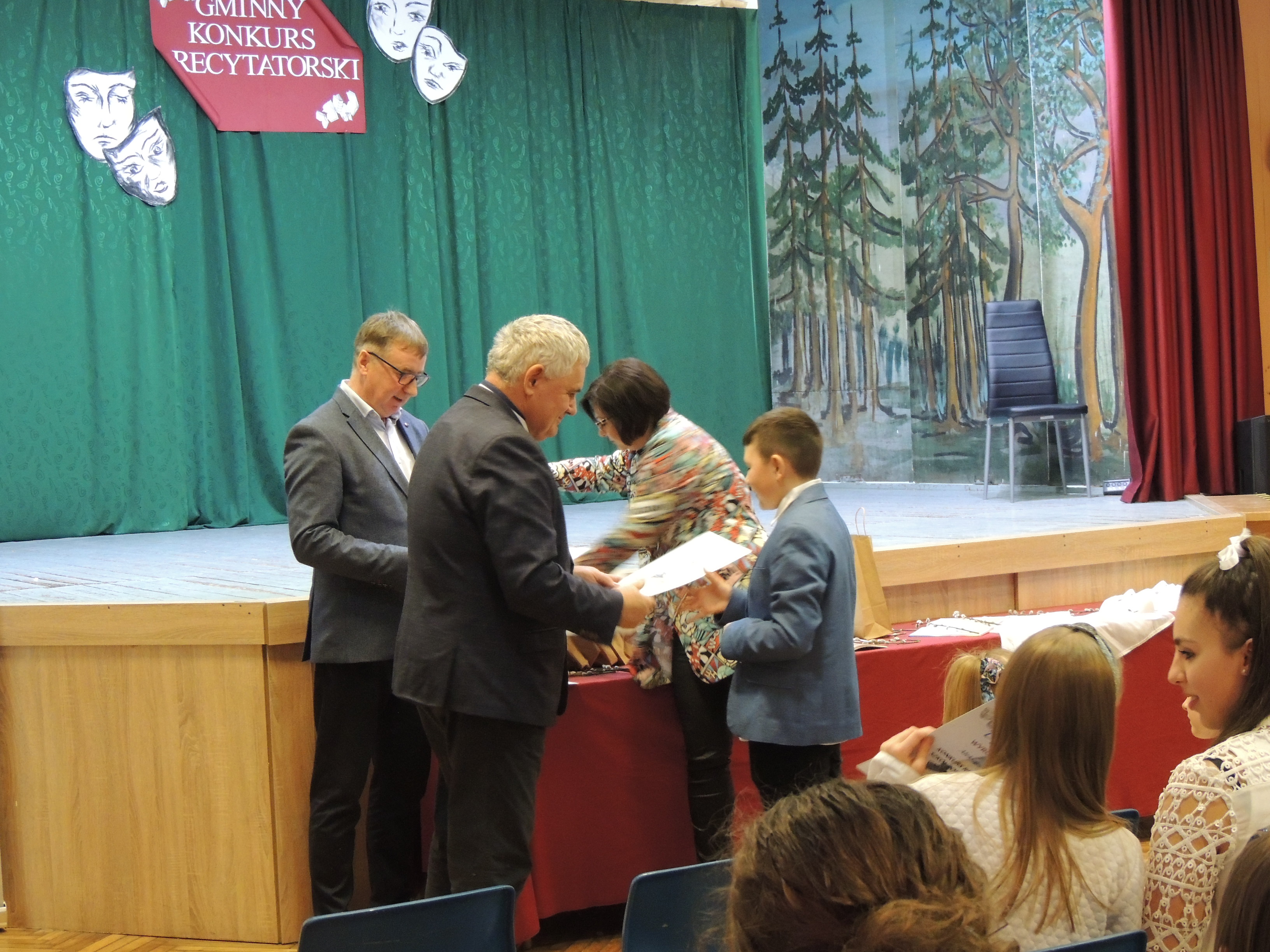 W sali Gminnego Ośrodka Kultury w Nawojowej odbyła się XIV edycja Gminnego Konkursu Recytatorskiego Gminy Nawojowa. Na scenie zaprezentowało się 48 wykonawców ze szkół podstawowych Gminy Nawojowa. Prezentacje odbywały się w dwóch kategoriach: klasy I-IV i V-VIII. Konkurs przebiegał w trzech konkurencjach: recytatorskiej, poezji śpiewanej i wywiedzione ze słowa. Komisja artystyczna po wysłuchaniu wszystkich prezentacji postanowiła przyznać następujące wyróżnienia: w konkursie recytacji w kategorii klas I-IV pierwszego miejsca nie przyznano, drugie miejsce otrzymała Lena Lelito, trzecie miejsce Jakub Michalik a wyróżnienie otrzymała Aleksandra Wójs. W kategorii klas V-VIII również nie przyznano pierwszego miejsca a drugie miejsce otrzymał Stanisław Kłębczyk, trzecie miejsce Mateusz Borek a wyróżnienia otrzymali Izabela Sroka i Natalia Olszowska. W kategorii „wywiedzione ze słowa” przyznano tylko I miejsce Aleksandrowi Słabemu. W kategorii „Poezji śpiewanej” wyróżnienie otrzymała Sylwia Sekuła. Pamiątkowe dyplomy i nagrody rzeczowe wyróżnionym uczestnikom konkursu wręczał Wójt Gminy Nawojowa dr inż. Stanisław Kiełbasa. Słowa podziękowania kierujemy do nauczycieli za zaangażowanie w przygotowanie uczniów do konkursu.