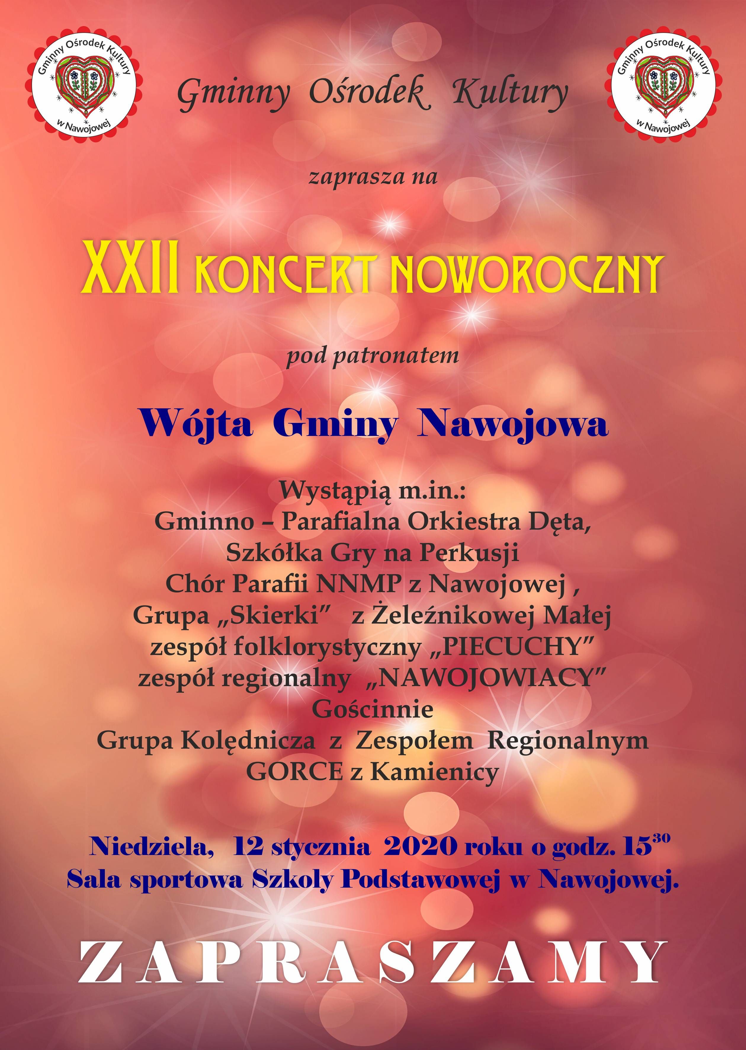 Zapraszamy na XXII Koncert Noworoczny pod patronatem Wójta Gminy Nawojowa 4 stycznia 2020 konrad Bez kategorii 0