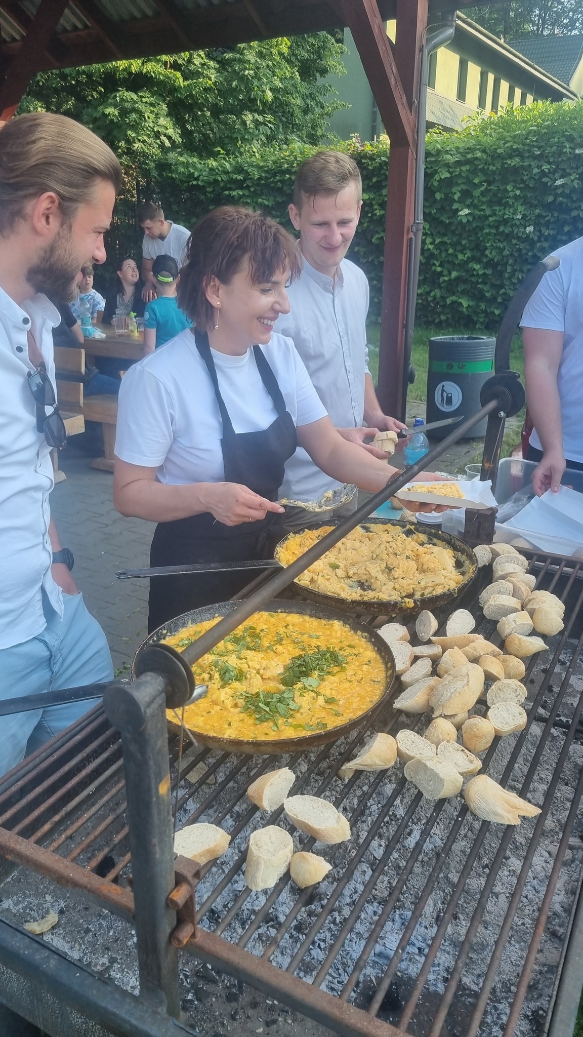 Każdy uczestnik zasmakował jajecznicy z lubczykiem, która jest tradycyjnym posiłkiem przygotowywanym podczas Zielonych Świątek
